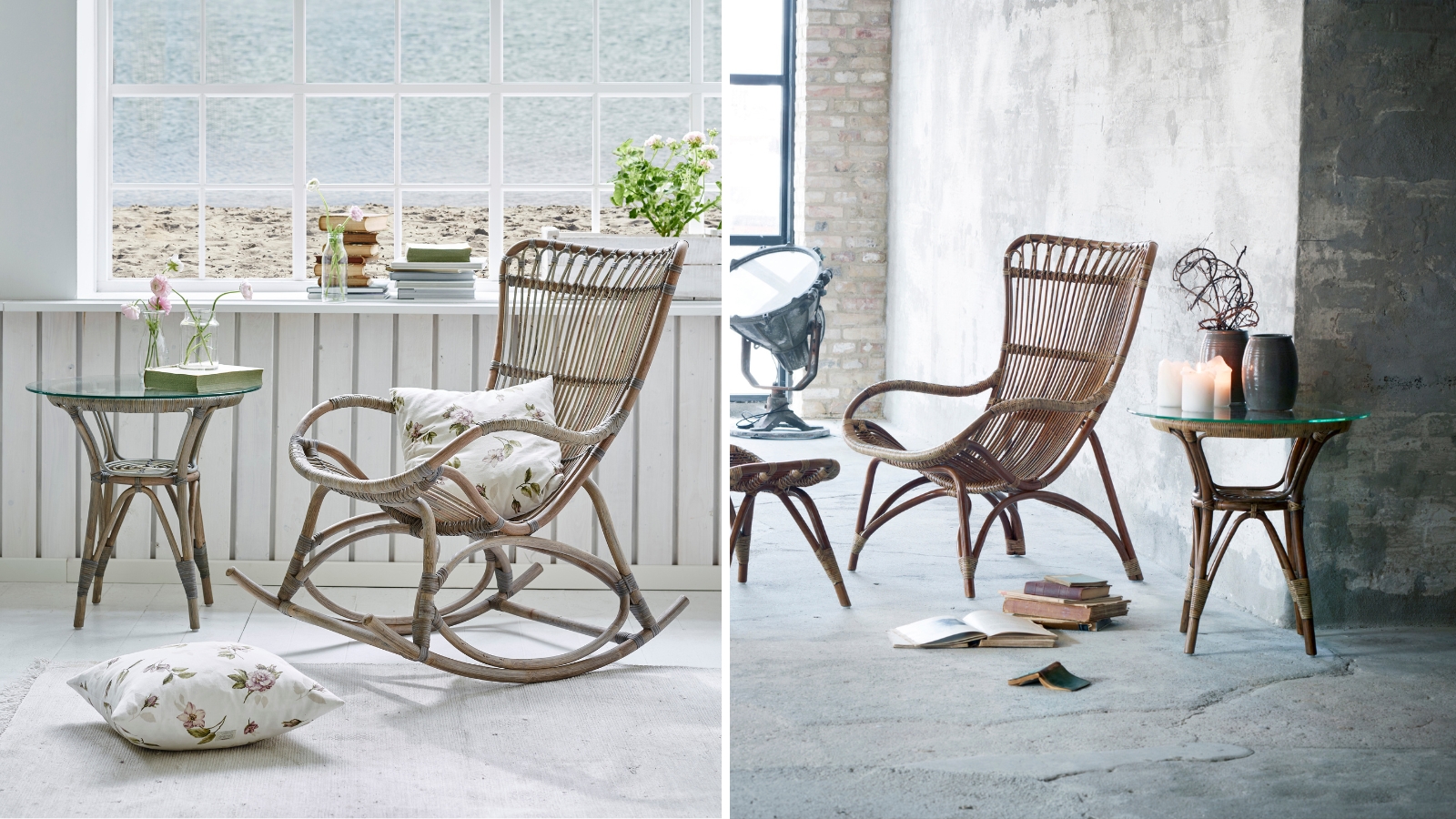 Material: Black powder coated steel frame with rattan basket and solid oak top.