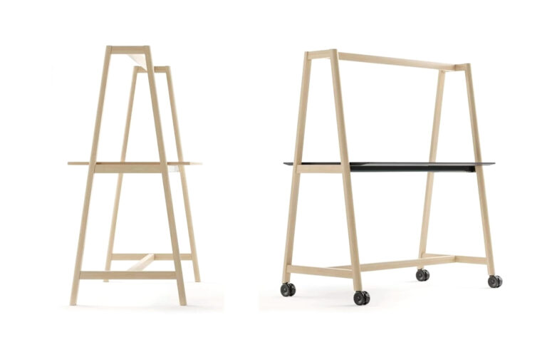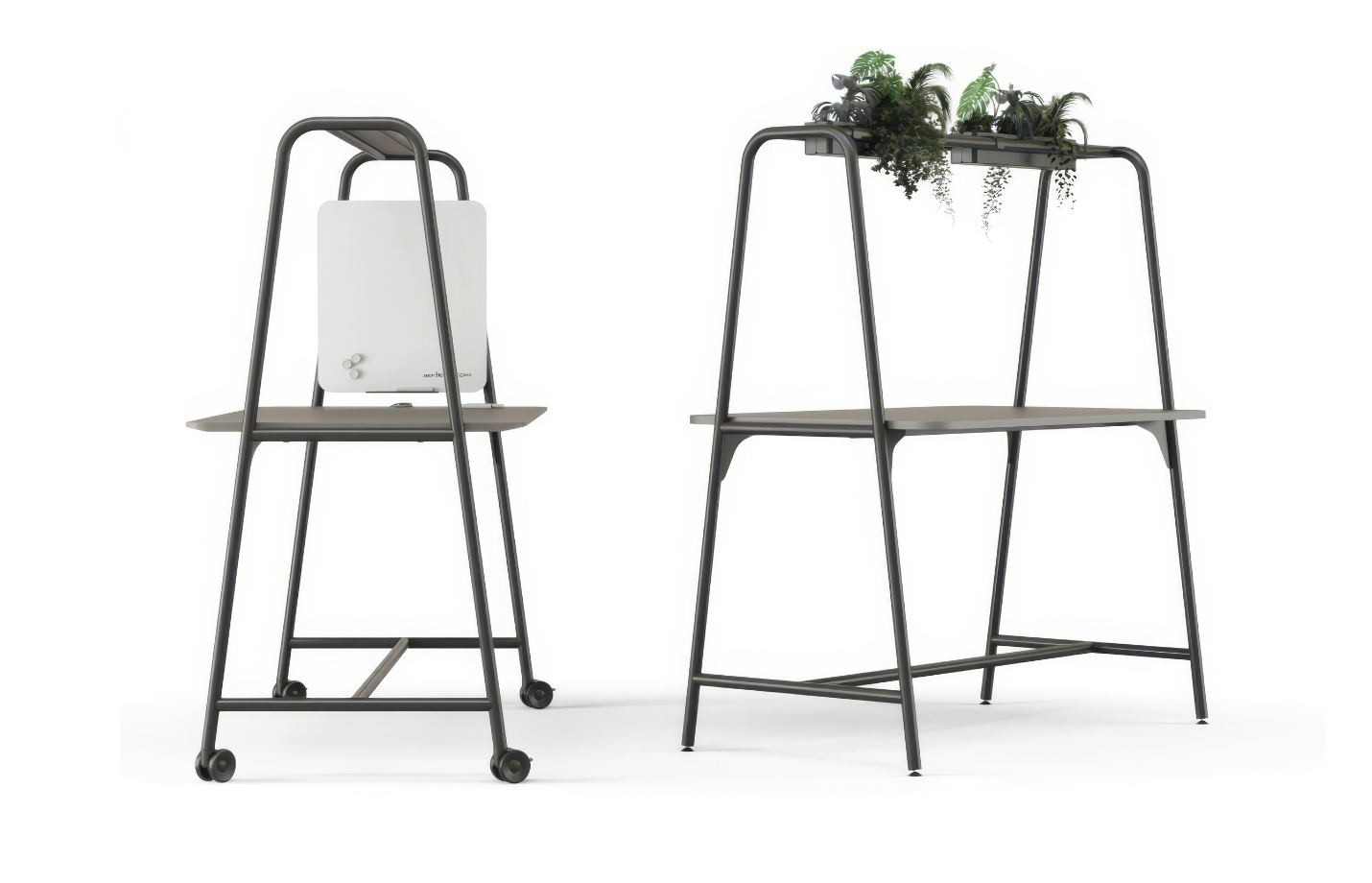 Material: MFC or HPL tabletop; powder-coated metal frame and