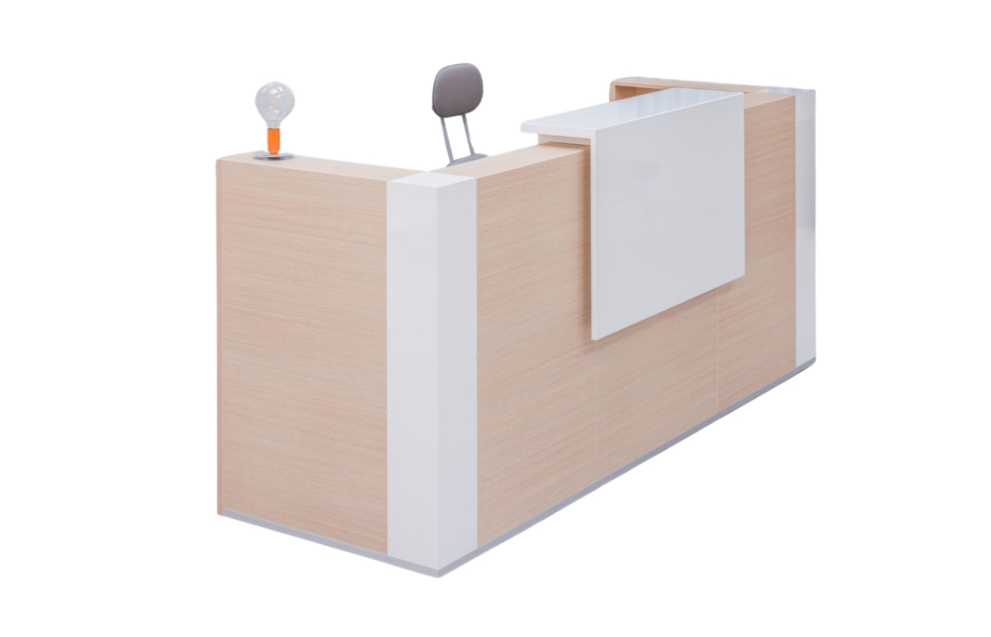 Note: Modular reception desk for office and hospitality spaces offered in straight or