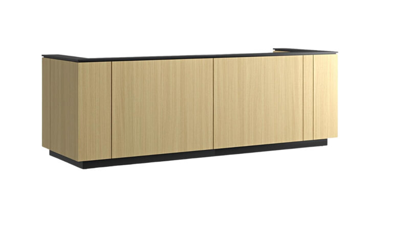 Note: Modular reception desk for office and hospitality spaces offered in straight or
