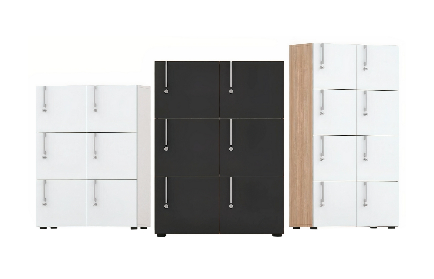 locks (no metal bars). Optional features include contrasting handles and height-adjustable feet.
