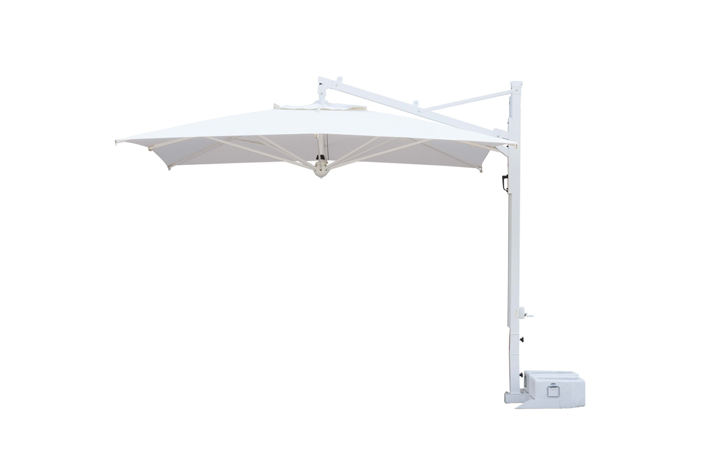 Material: Aluminium, steel structure epoxy coated and Acrylic fabric canopy, Concrete with metal base Finishes/Colors: Various Features: 360° Revolving base, Retractable opening and closing with crank, Inclination up to 60°