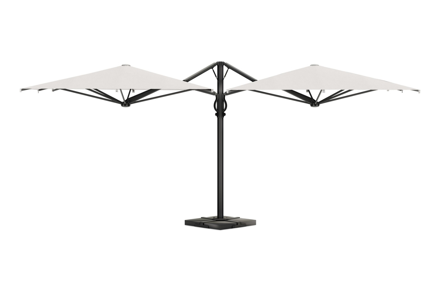 Features: 2 Parasols anchored to a single support, Retractile System, Opening and closing system assisted by gas