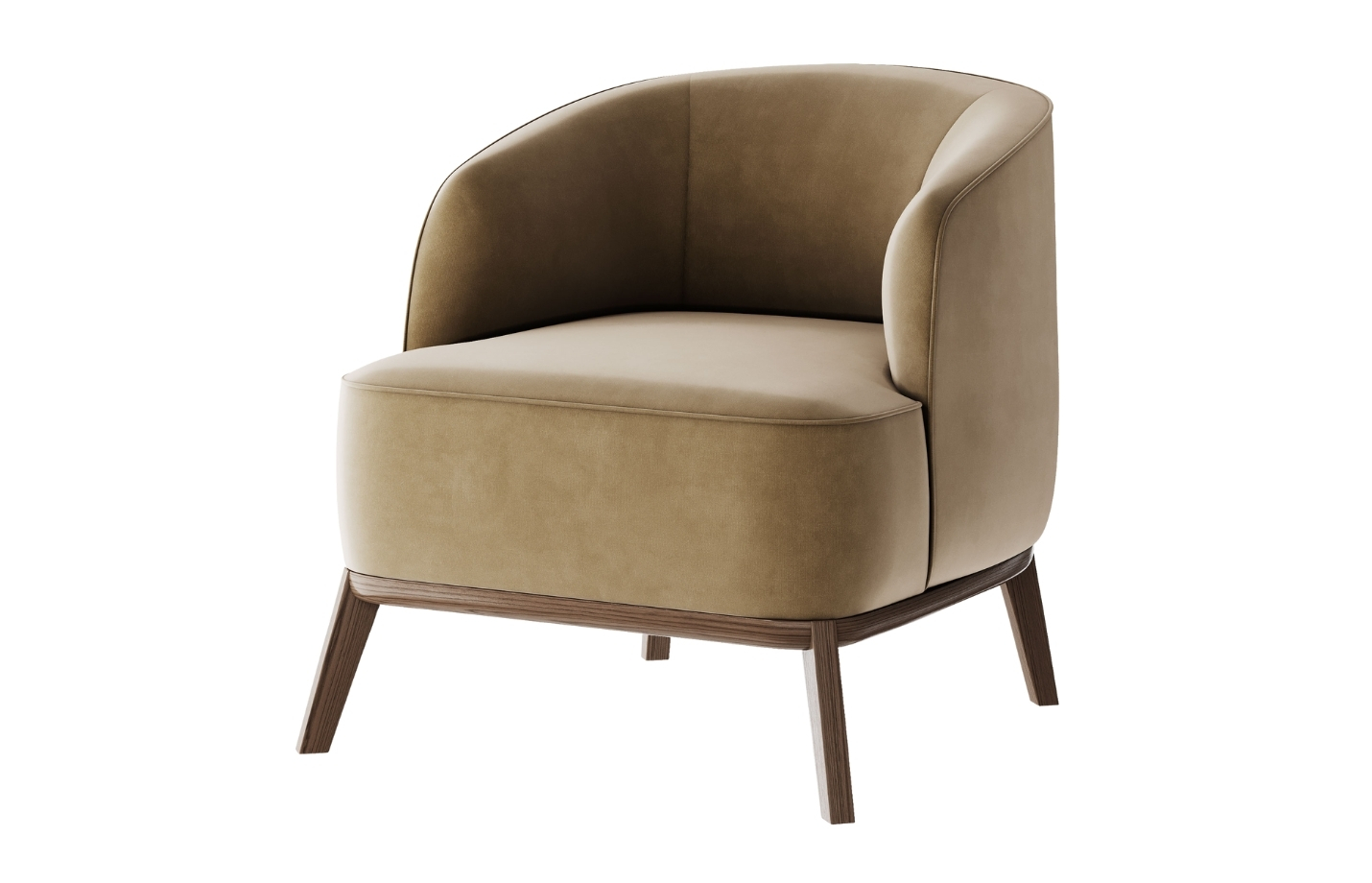 Material: Beech or ash wood base, upholstered seat and back in fabric or faux leather with piping.