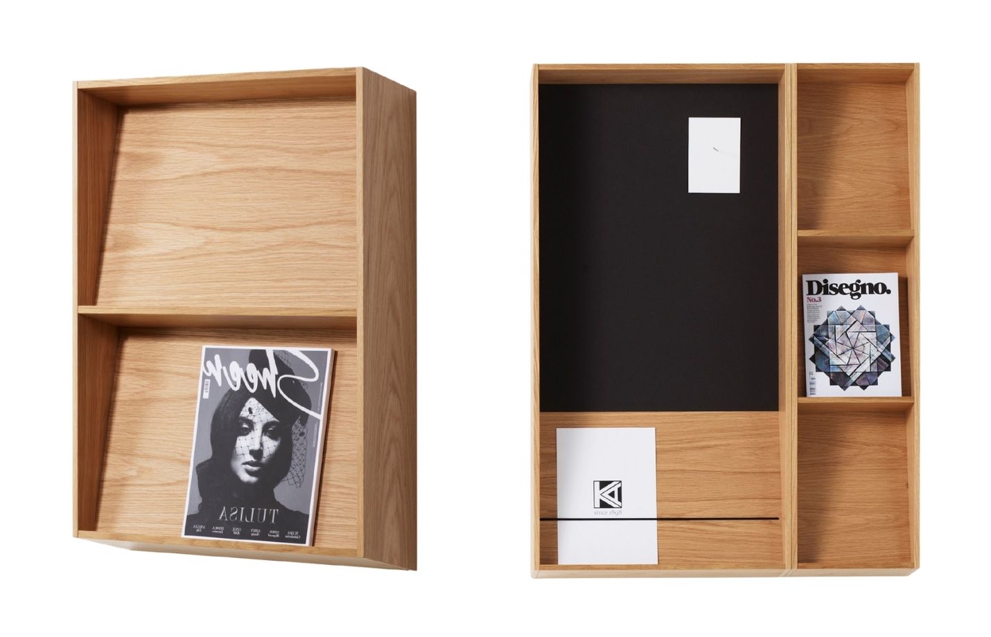 Material: MDF with oak or birch veneer, clear or white-glazed lacquer; optional felt, Bulletin Board, or magnetic whiteboard back; metal wall rail