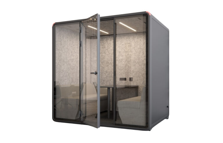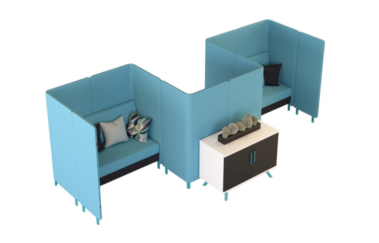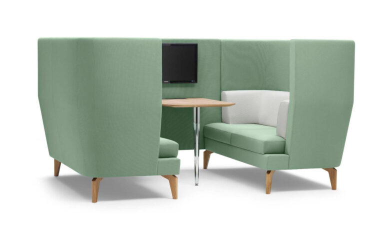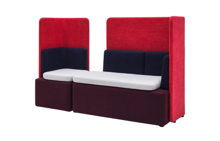 Material: Padded with high-resilience (CMHR) foam and fibre, loose seat and back cushions; fully upholstered over a steel-leg frame; designed for acoustic comfort.
