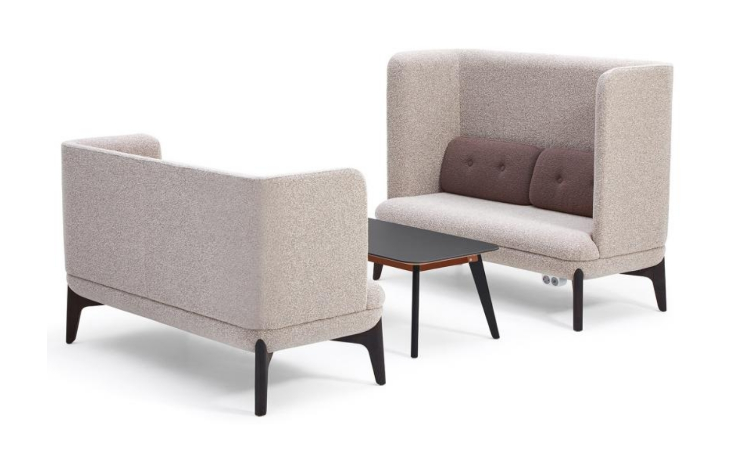 Material: Fully upholstered lounge sofa on a solid oak or stained wood frame; cushions made from CMHR foam, with optional leather arm pads and button detailing; base options include timber legs.
