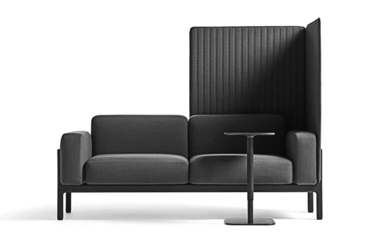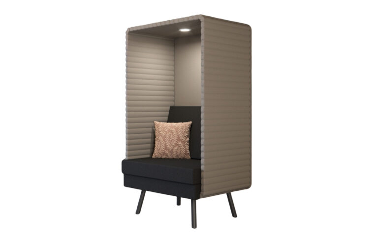 Material: Plywood shell, sprung seat & back with PE foam; all surfaces fully upholstered fabric; acoustic privacy screens